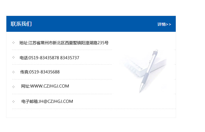 傳真:0519-83435688    郵編:213135    網址:WWW.czjhgj_com.bozhongzichan.com    電子郵箱:JH@czjhgj_com.bozhongzichan.com